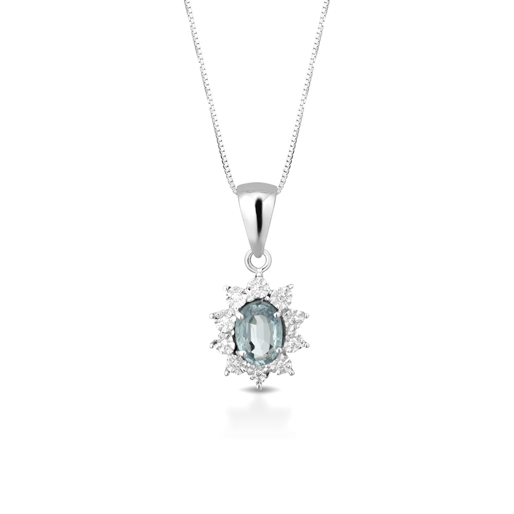 Collana in Oro 18kt con Acquamarina e Diamanti