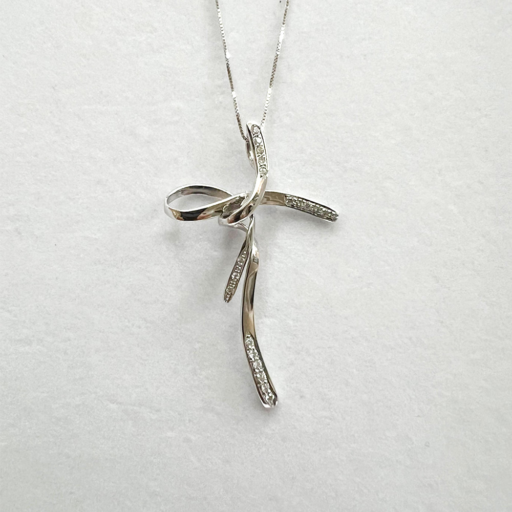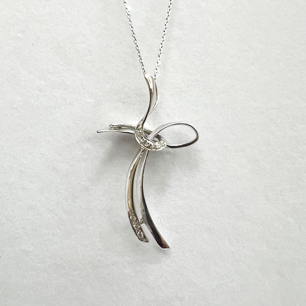 Croce stilizzata in oro bianco 18 KT gr 2,00 Brillanti 0,08 KT purezza VS colore F