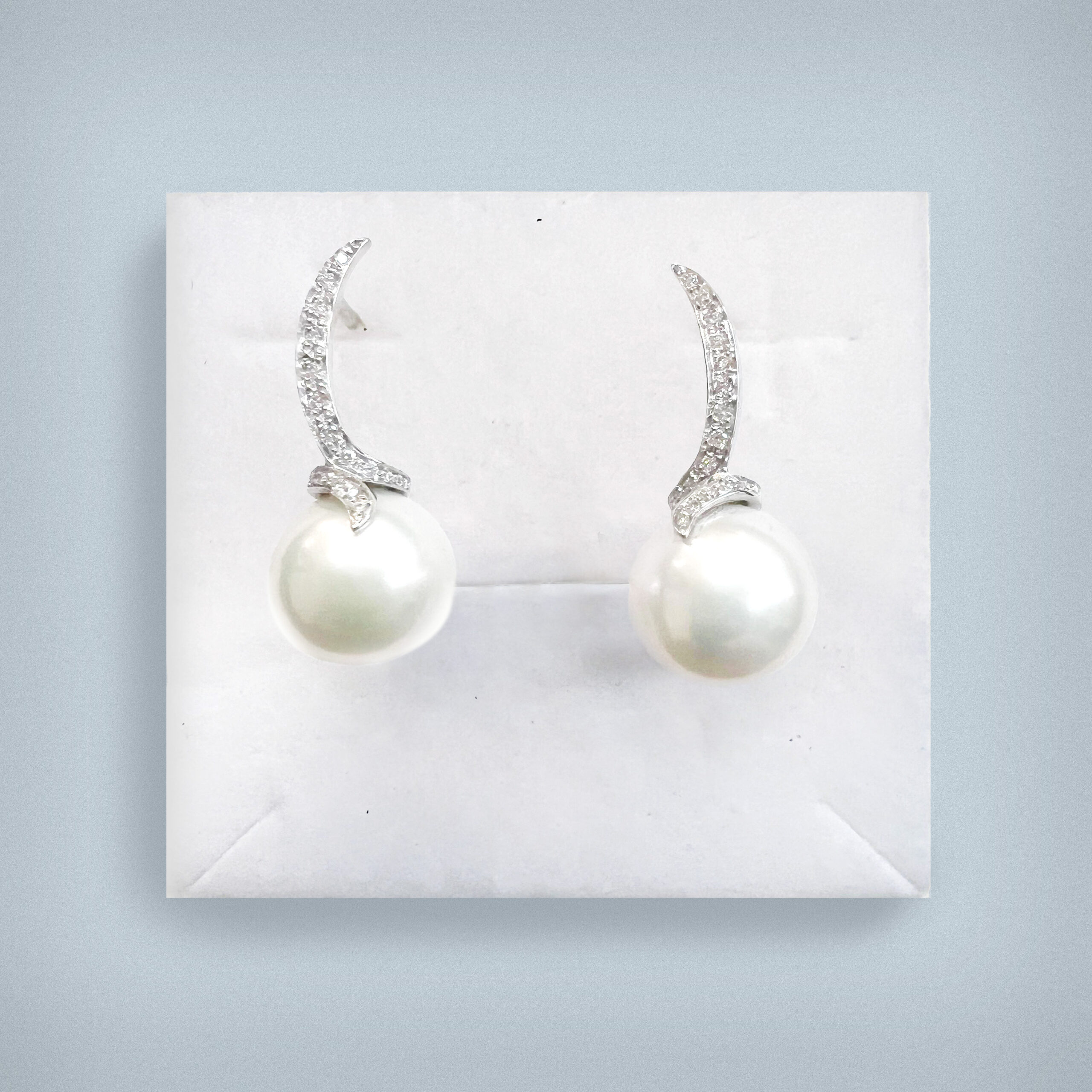 Orecchini in oro bianco 18 KT, Perle Australiane 17,50 KT , Brillanti 0,40 KT purezza VS colore F
