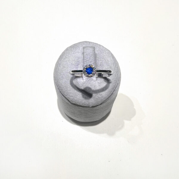 Anello in oro bianco KT 18 con Zaffiro KT 0.12 e Brillanti KT 0.06 purezza VS colore G