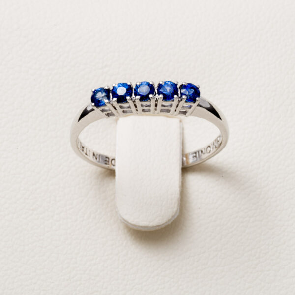 Anello veretta in oro bianco 18 KT gr 1,60 con zaffiri KT 0,38