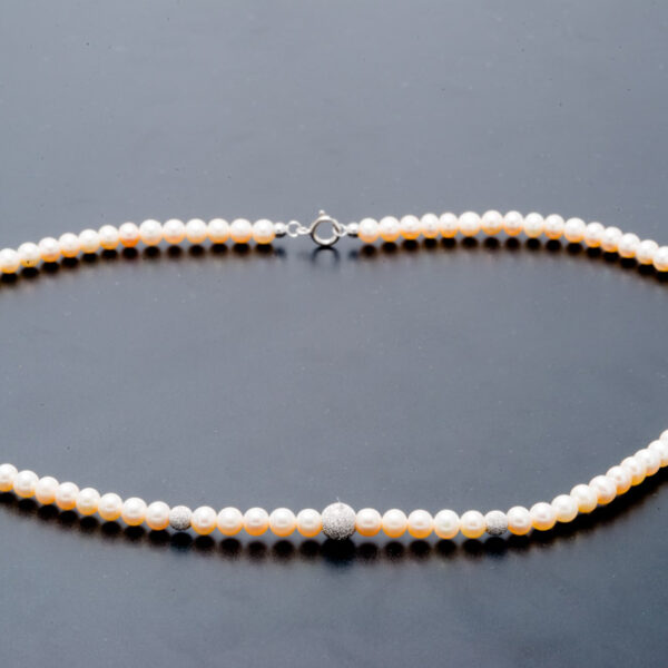 Collana di perle coltivate mm 6/6,50 con sfere di oro bianco 18 KT