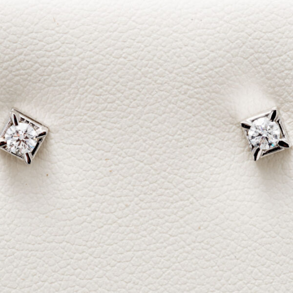 Orecchini punti luce in oro bianco 18 KT gr 1,20 con brillanti KT 0,24 purezza VVS1 colore F